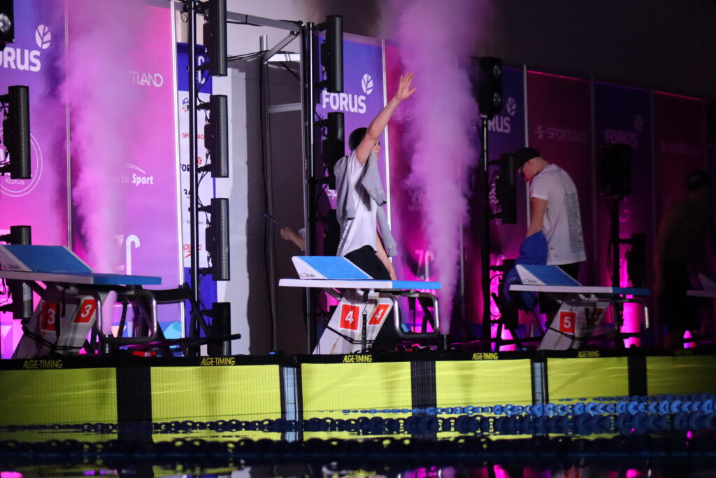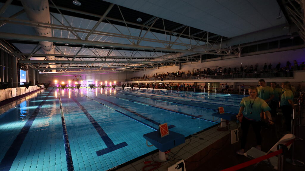 A strong emphasis is placed on making swimming competition more spectacular — for example a DJ, special effects, lighting solutions, and more are featured. The competition takes place at the Aura Centre in Tartu.